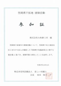 この清掃活動は、地域の自然環境を保全し、美しい景観を次世代へと引き継いでいくことを目的に実施されており、当社もその趣旨に賛同し、継続的に参加しています。